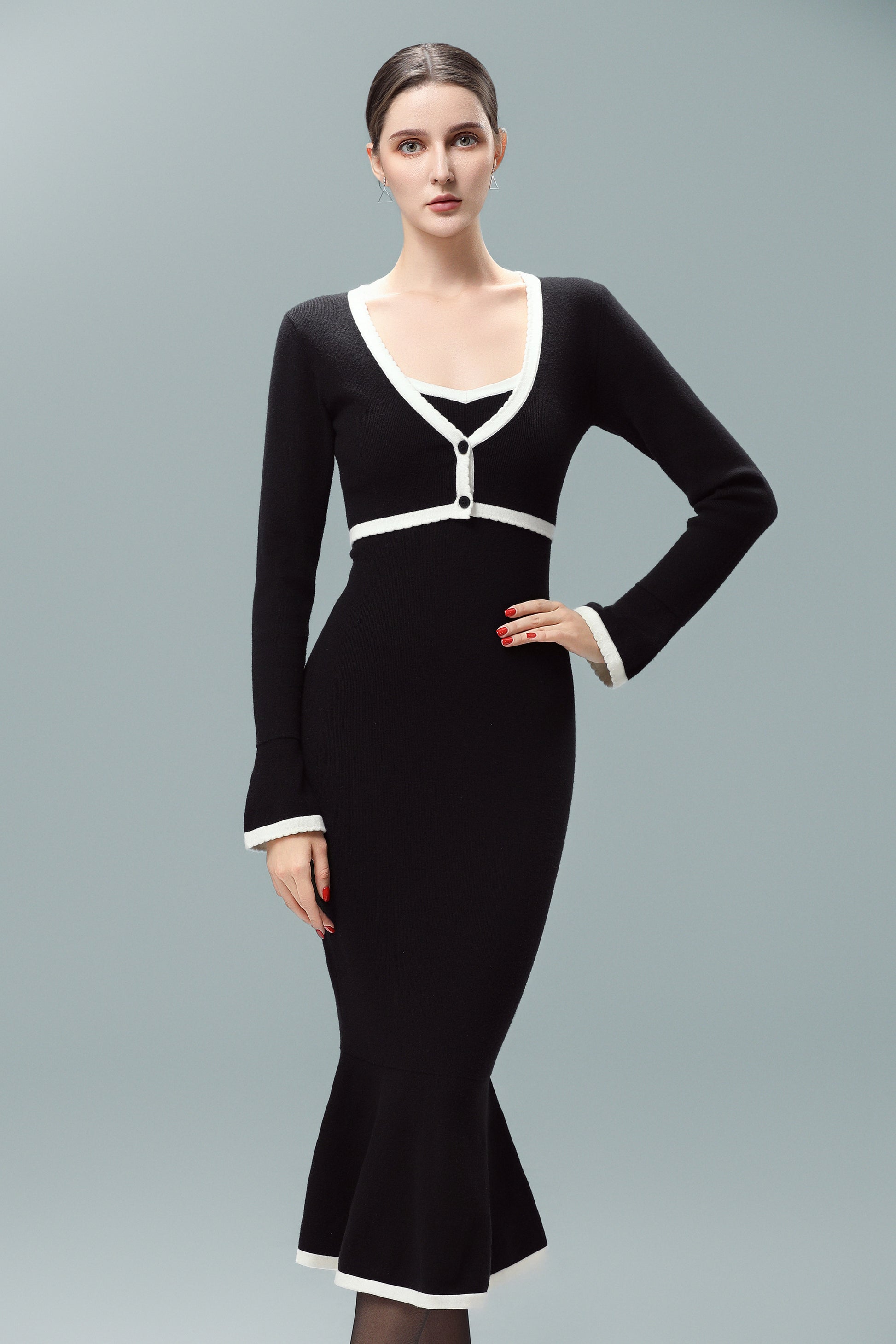 - Closure: Elegant button-up front for versatile styling