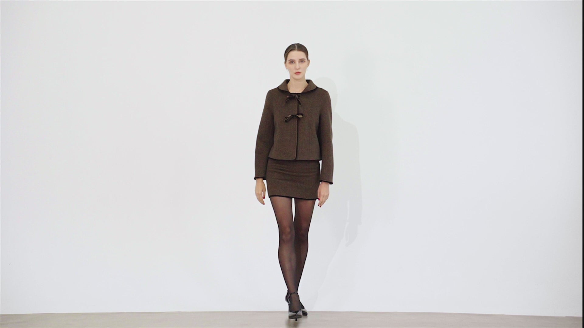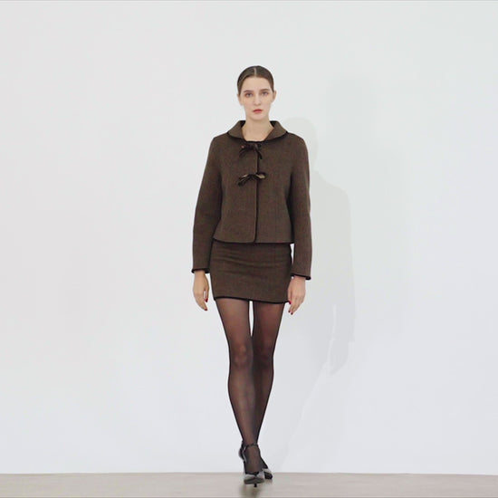 For a polished office look, pair the Lola skirt with the Sofia jacket and heeled boots for a timeless, coordinated set.